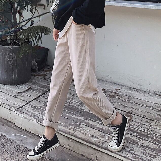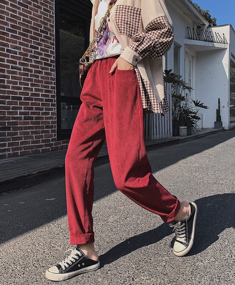 ストレッチの効いた9分丈のコーデュロイパンツ